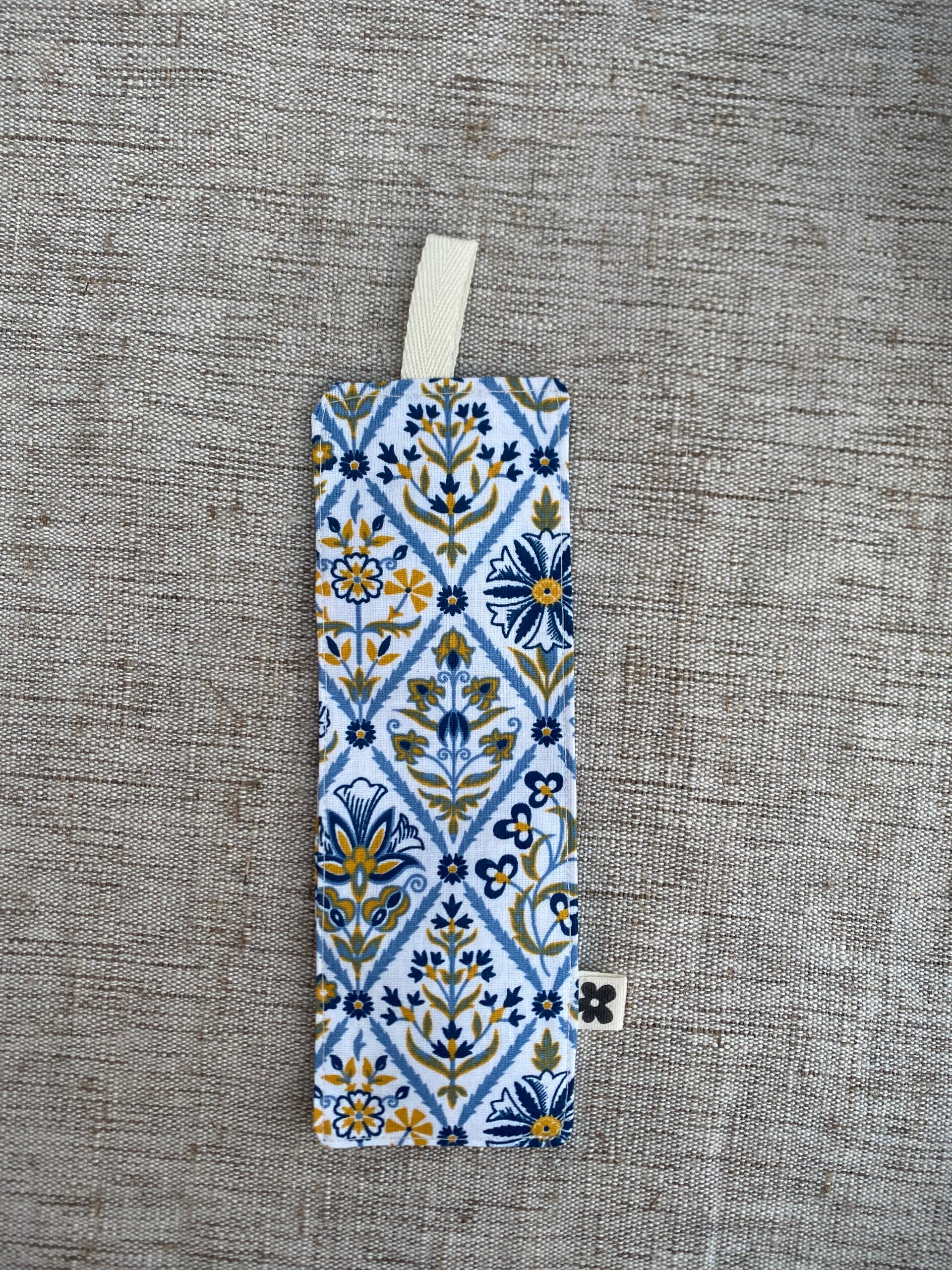 Marque-page pratique et léger en coton. Il se glisse facilement entre les pages sans les abîmer.