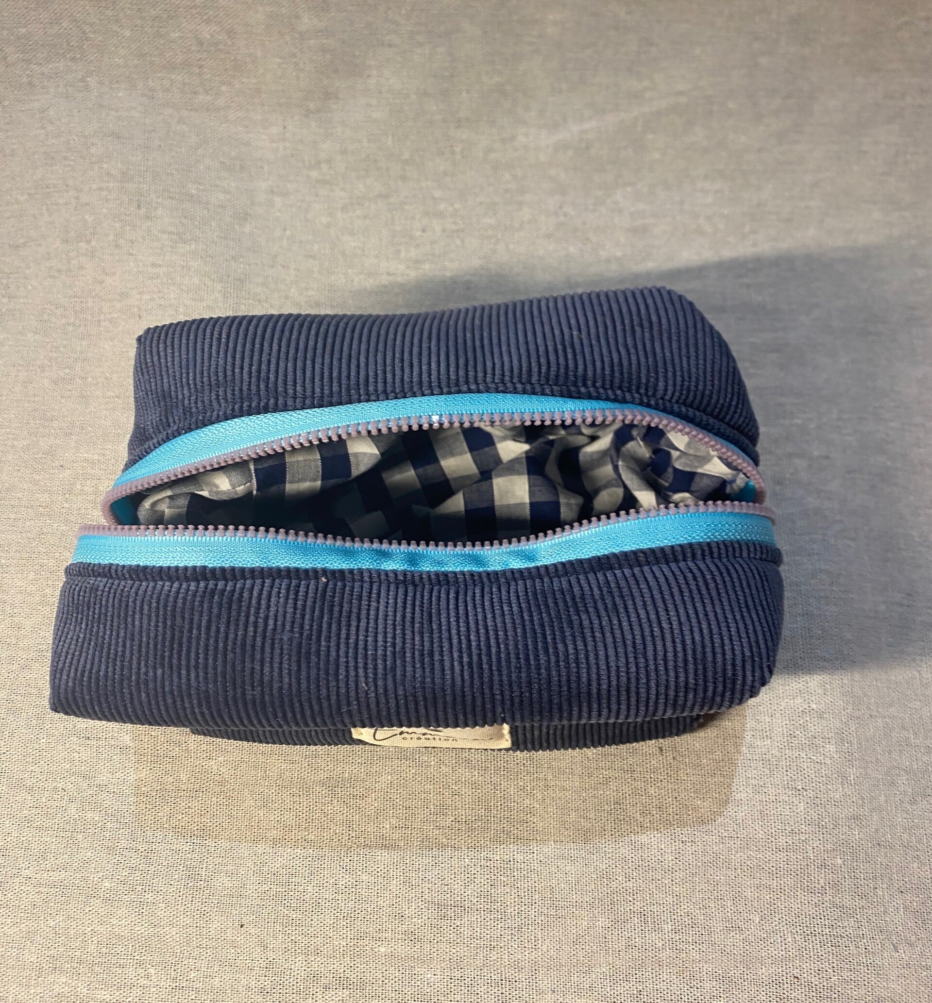 Trousse en velours côtelé vous permettant de ranger vos produits de soin et de beauté, en voyage ou à la maison. Sa fermeture permet de garder vos objets bien protégés.