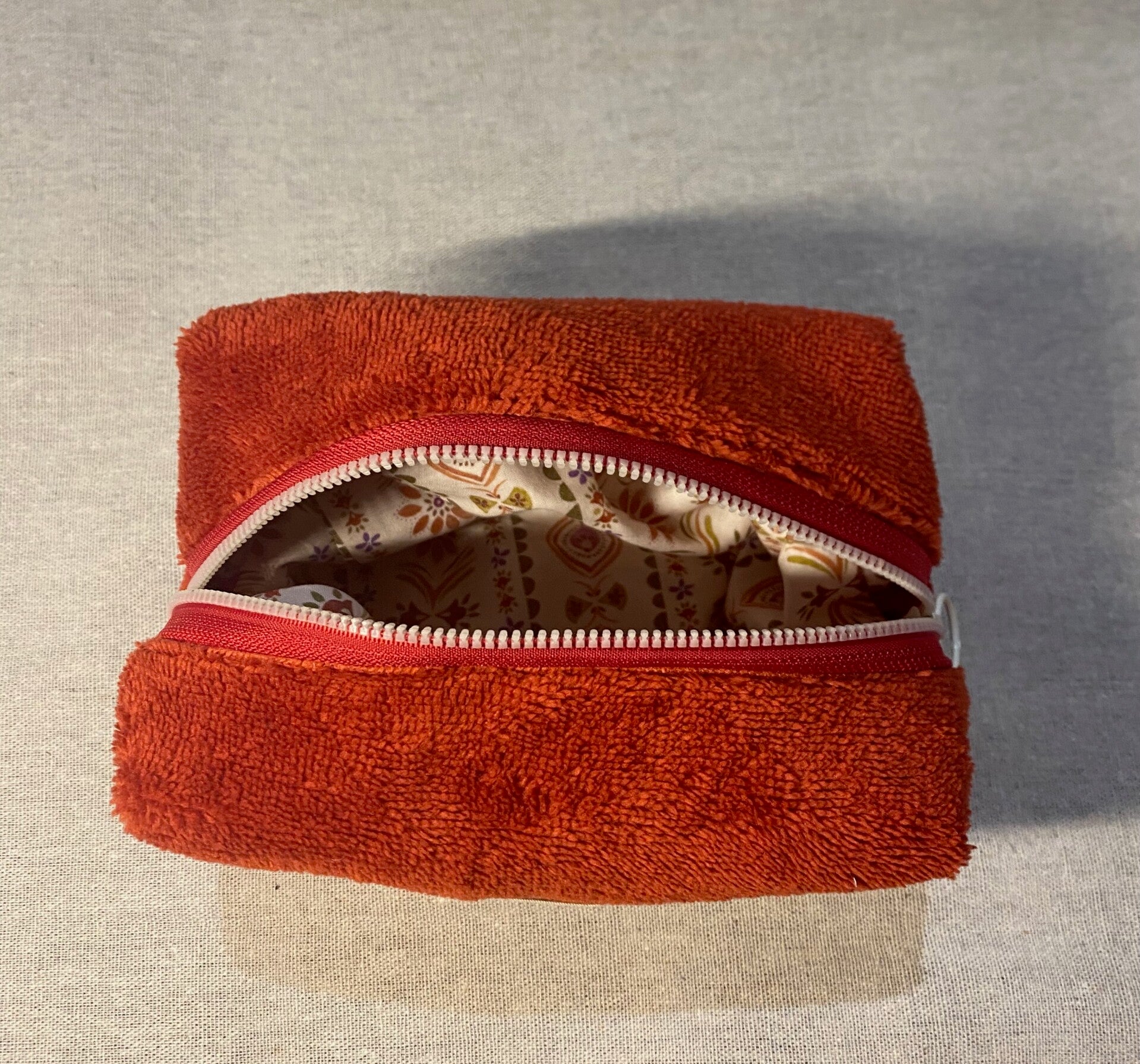 Trousse en tissu éponge vous permettant de ranger vos produits de soin et de beauté, en voyage ou à la maison. Sa fermeture permet de garder vos objets bien protégés.