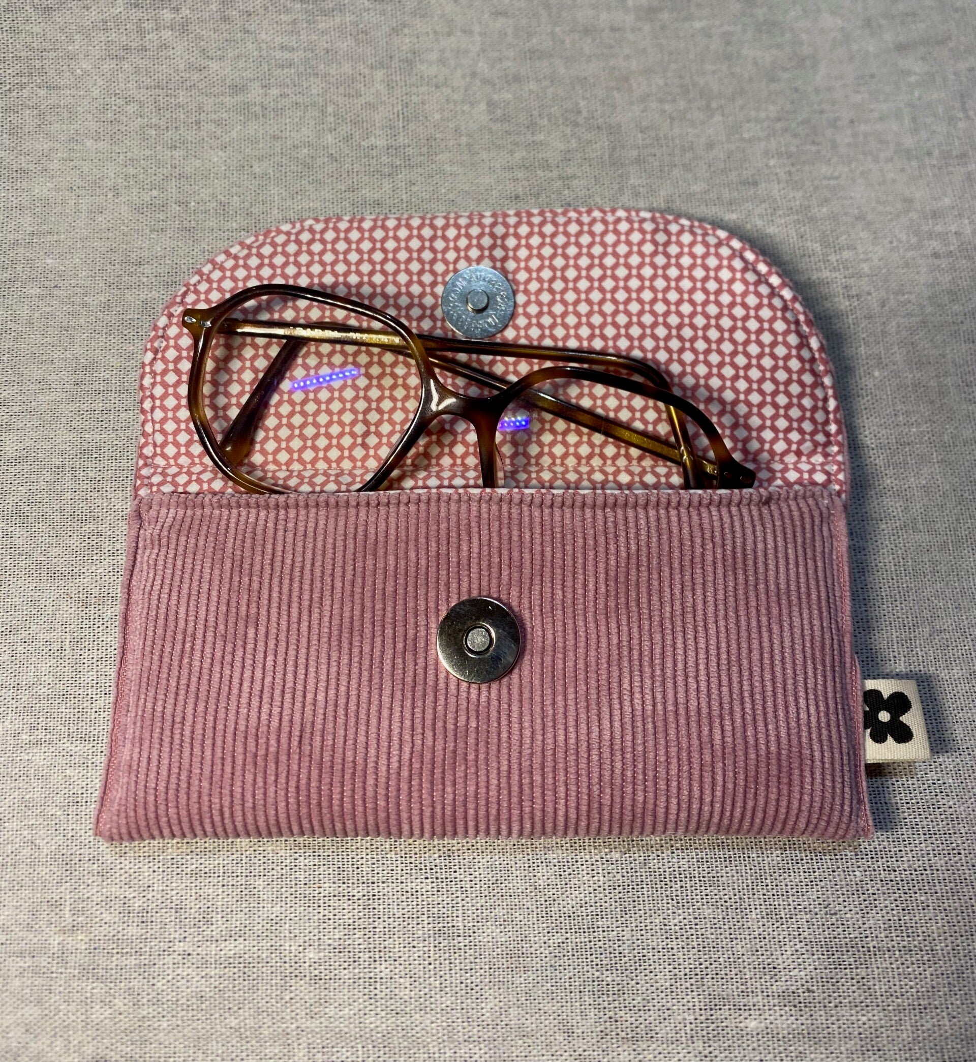 Etui à lunettes en velours côtelé et rembourré permettant la protection de vos lunettes de vue ou de soleil.