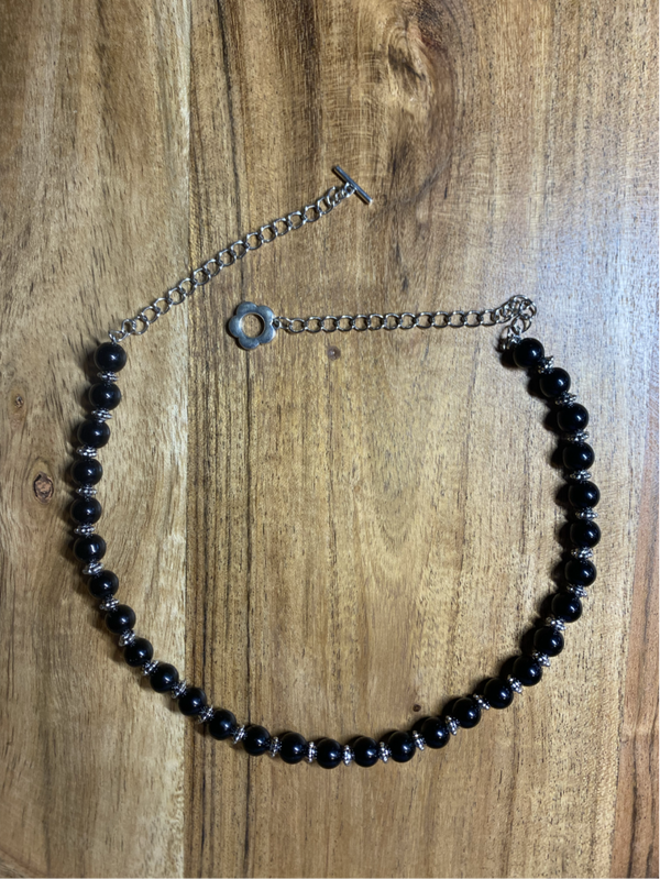Collier noir argenté