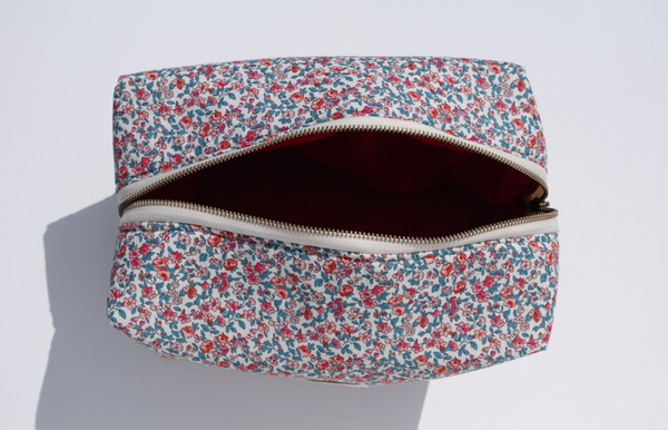 Trousse de Toilette XL en Tissu Fleuri Rouge