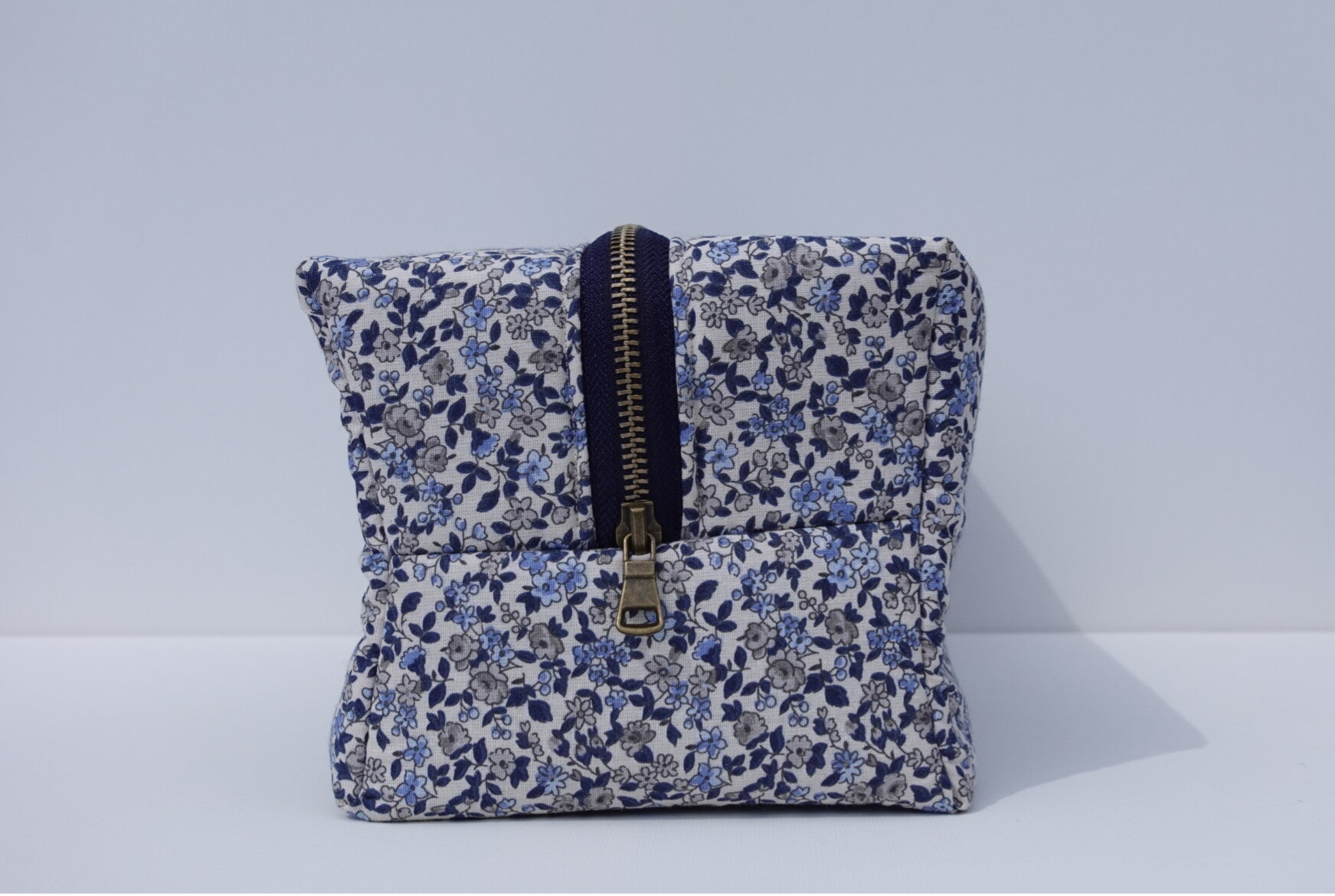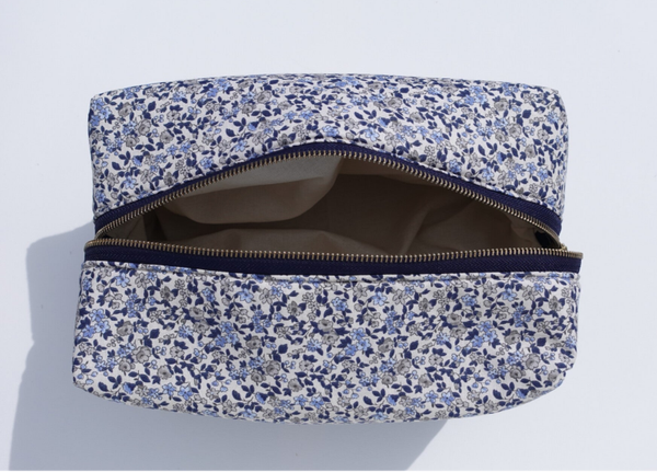 Trousse de Toilette XL en Tissu Fleuri Bleu
